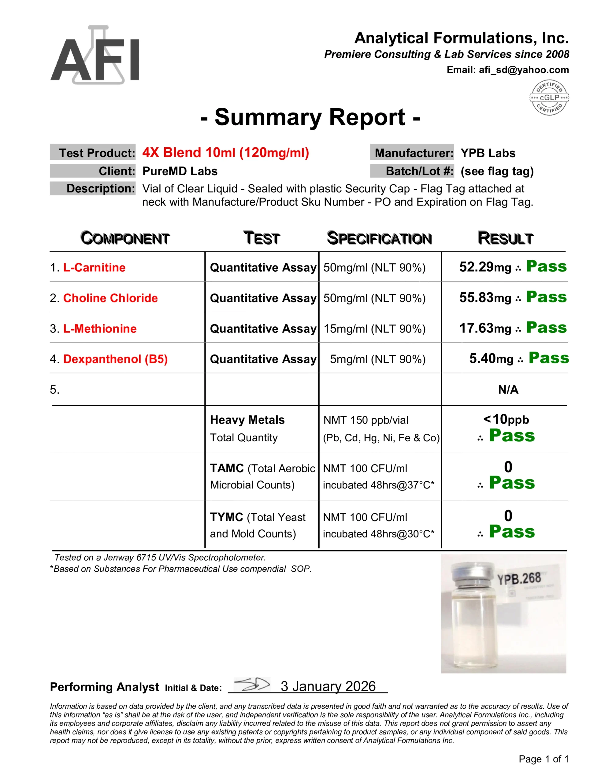 4X Blend Methionine (15mg) / Choline Chloride (50mg) / Carnitine (50mg) / Dexpanthenol (5mg)