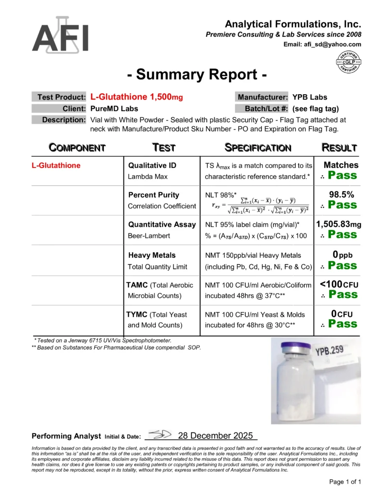 Each lot is sourced through our verified global supply chain with emphasis on traceability and quality control. We work diligently to obtain and maintain third-party analytical reports (HPLC/LC-MS) and Certificates of Analysis for each batch, as part of our ongoing quality process. These documents are reviewed internally and displayed as they become available. Independent third-party testing is also performed on select lots to confirm identity, purity, and alignment with our internal specifications.