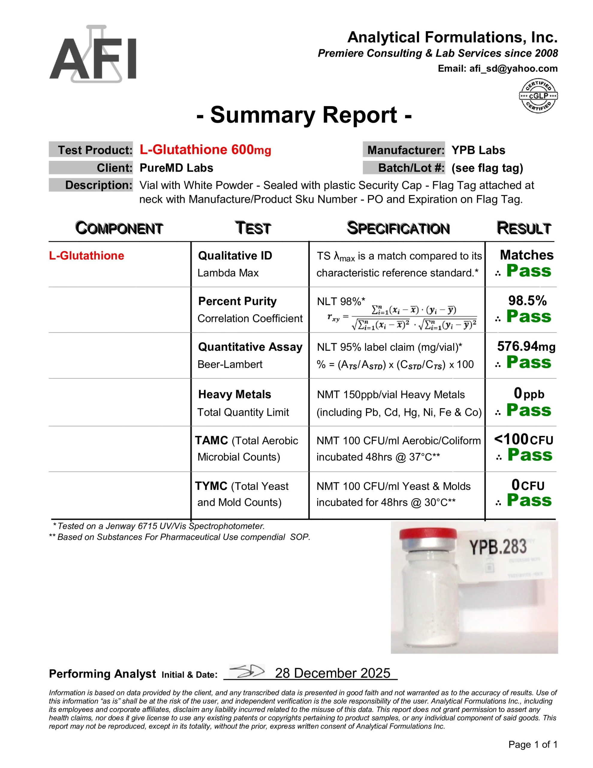 Certificate of Analysis