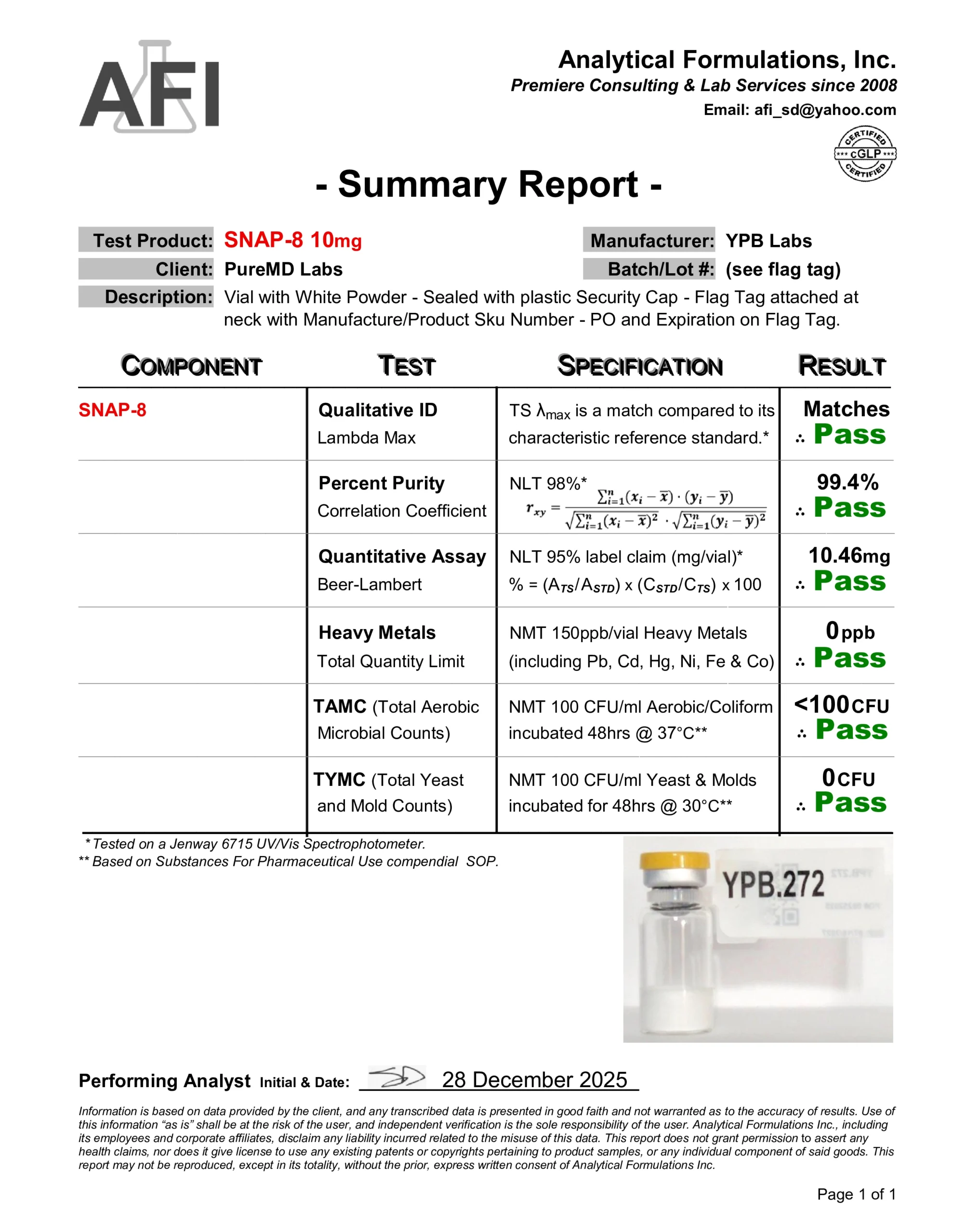 Certificate of Analysis